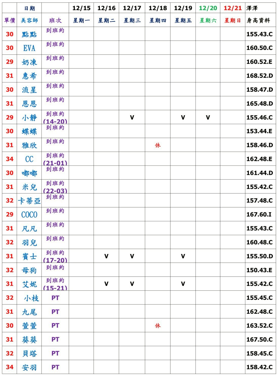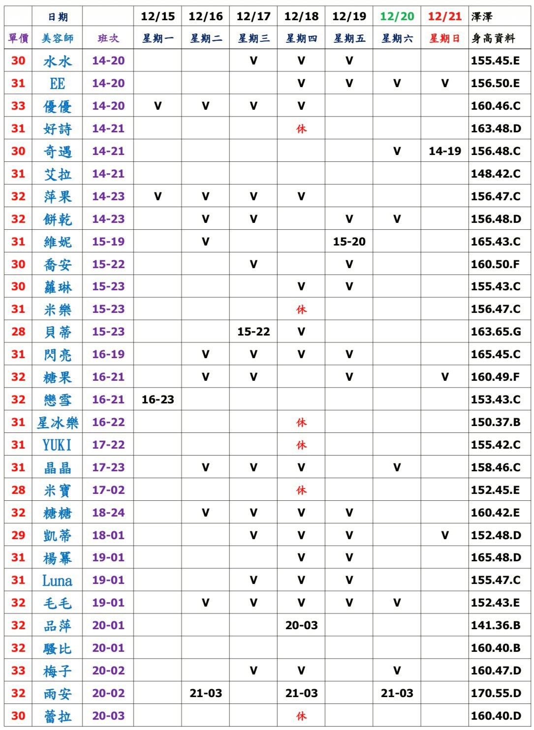 - 加值服務:班表無標示,私訊我詢問。>>> LINE