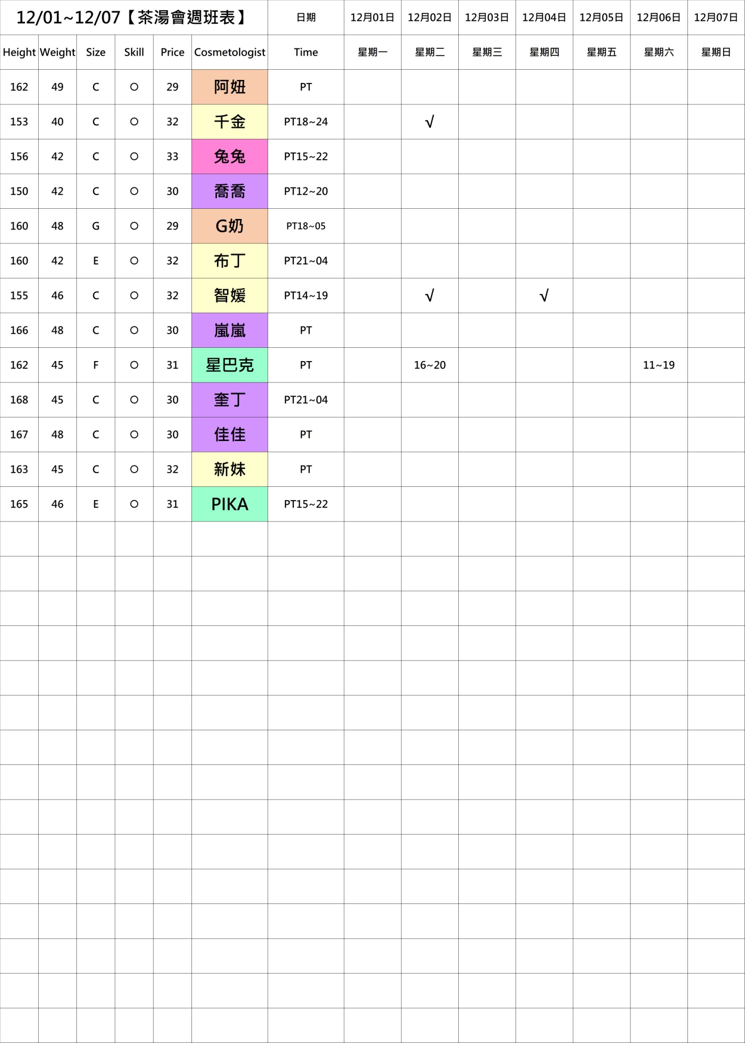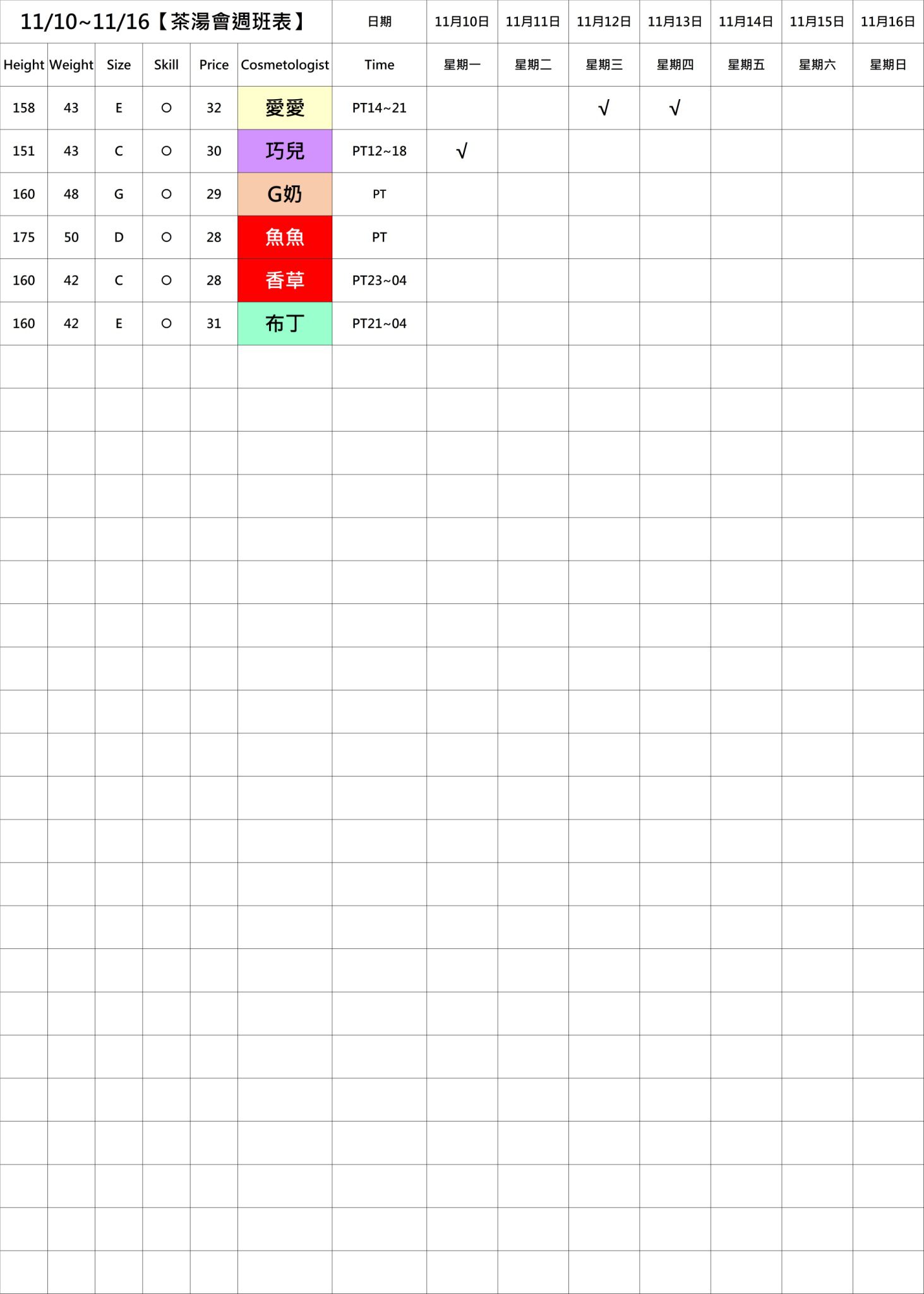 - PT:兼職=想來才來,不會先報班,當天人到後才可約。