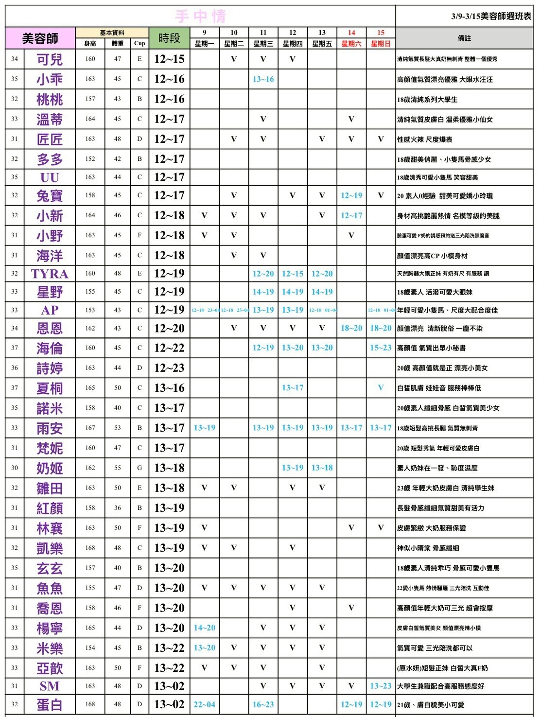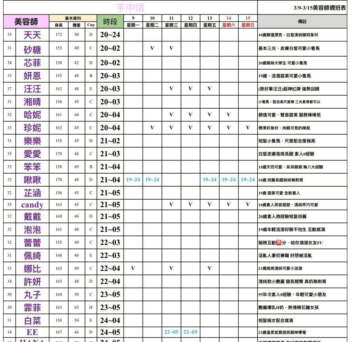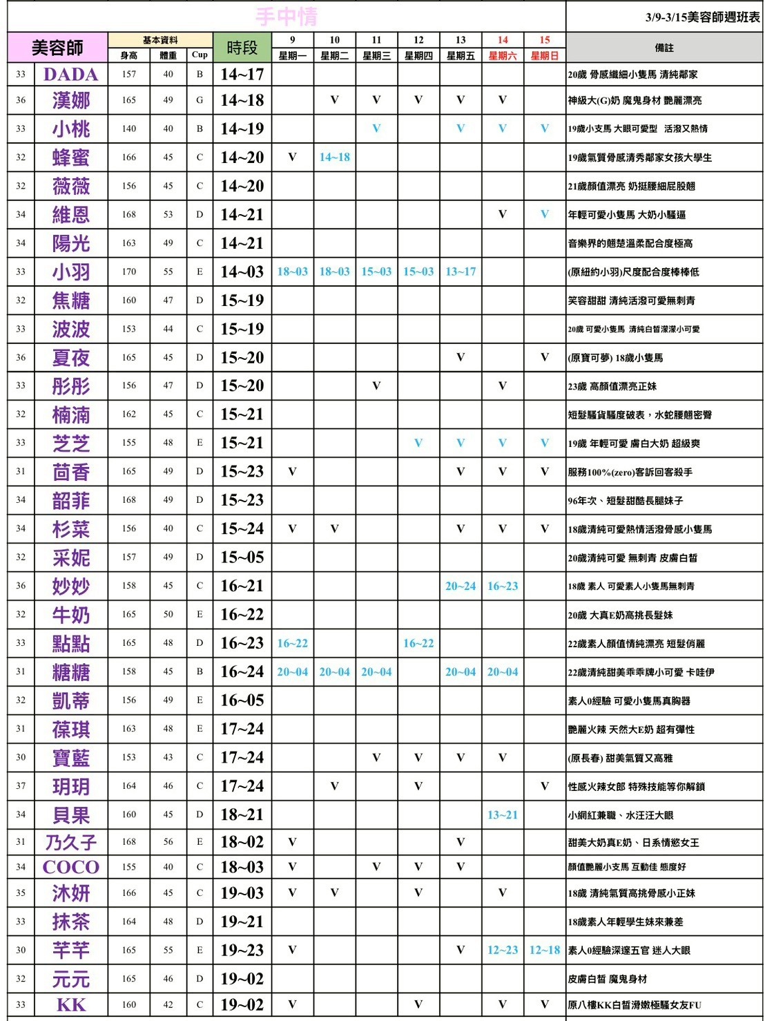 - 最右邊備註欄:28=$2800;29=$2900以此類推~