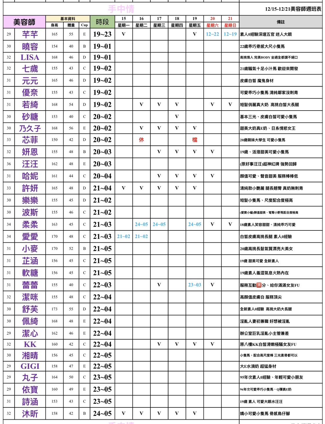 - 加值服務:班表無標示,需私訊我詢問。