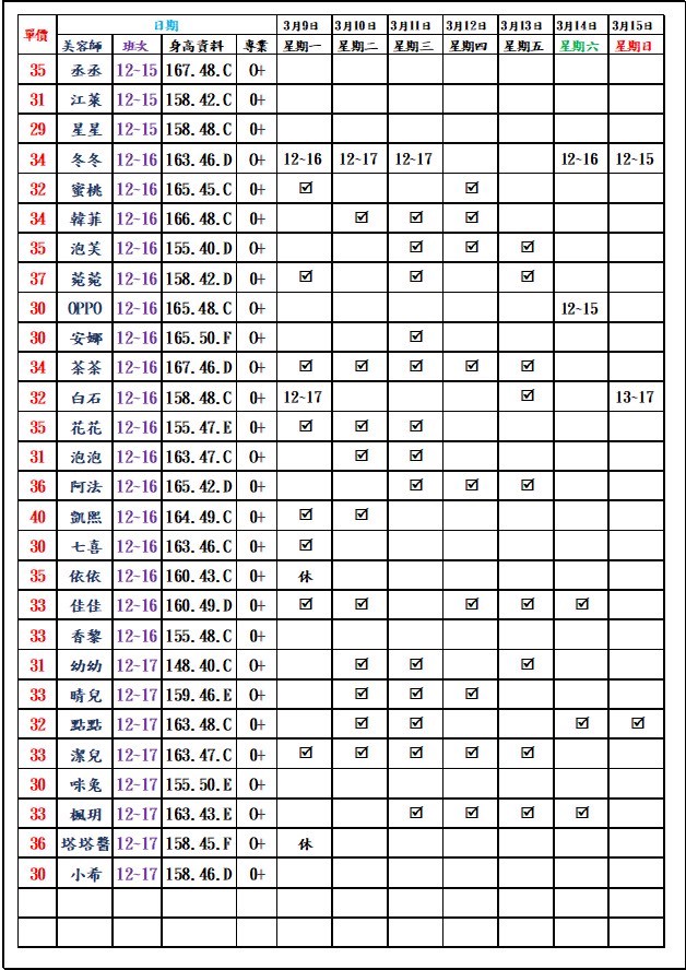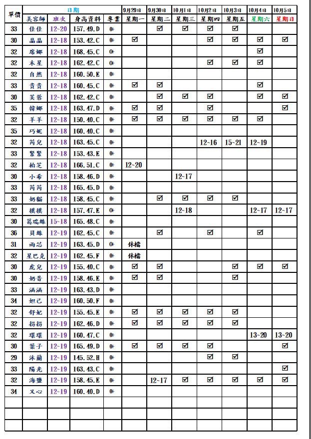 - 人到再約:到班不正常,報了班不一定會來,人到店內後才可預約。