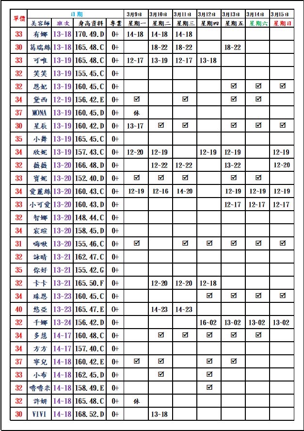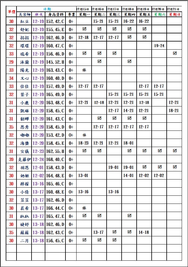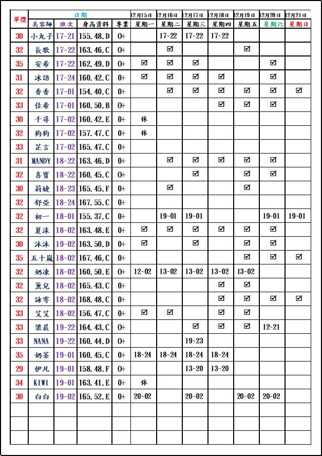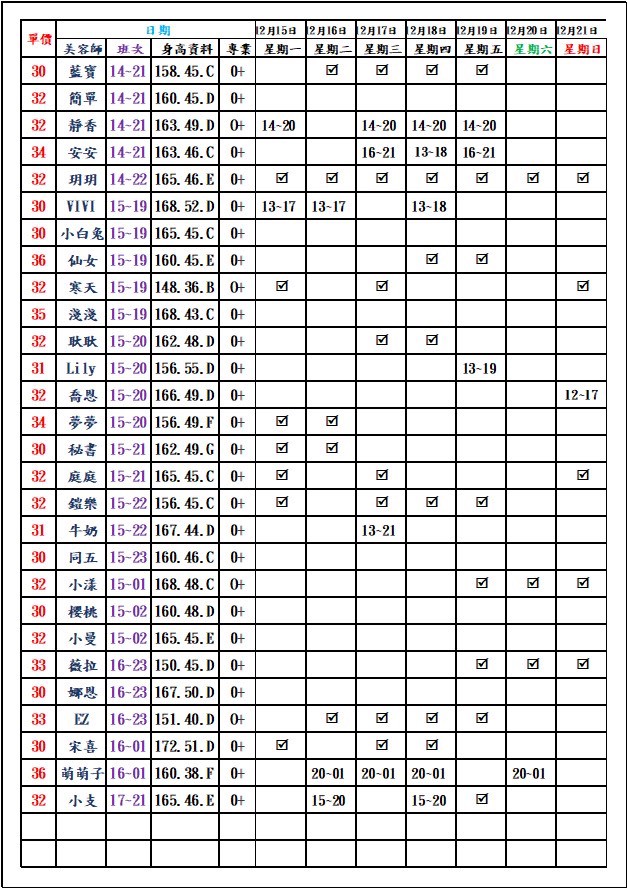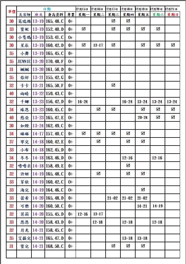 林森北路按摩舒壓|林森2館班表 2025.12.15更新