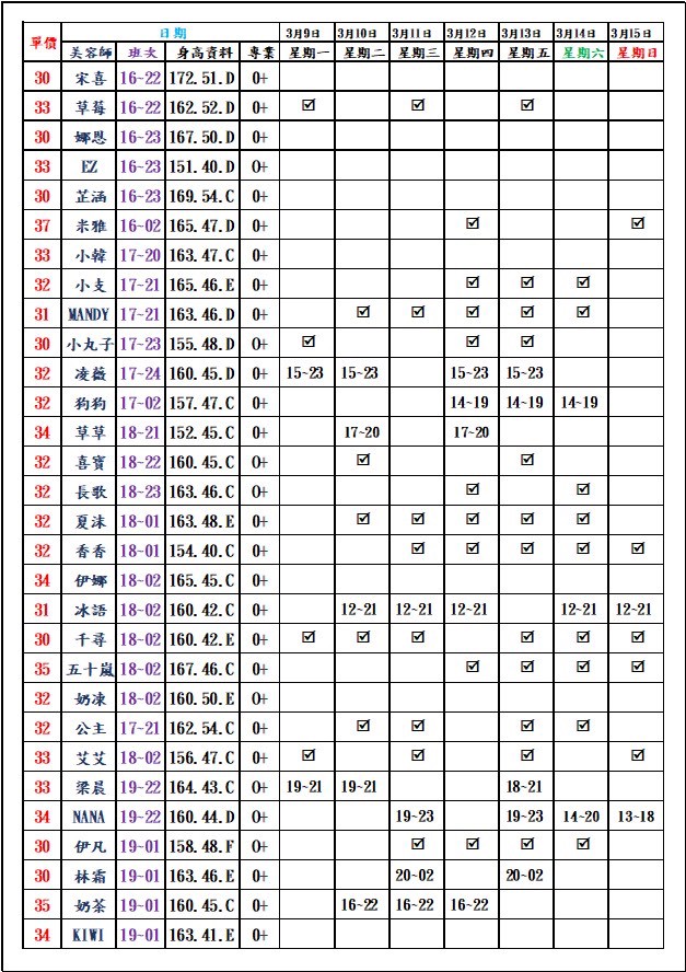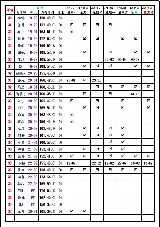 - PT:兼職=想來才來,不會先報班,當天人到後才可約。