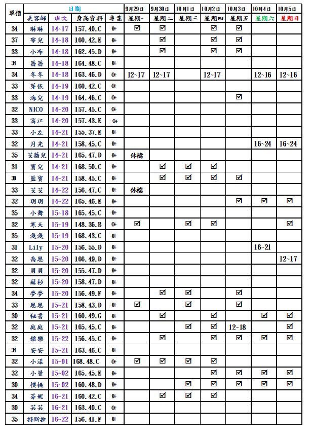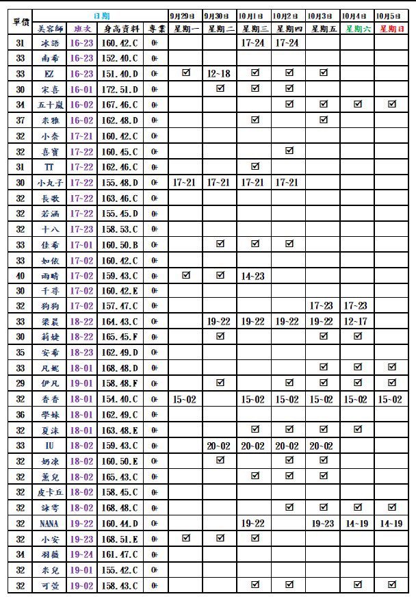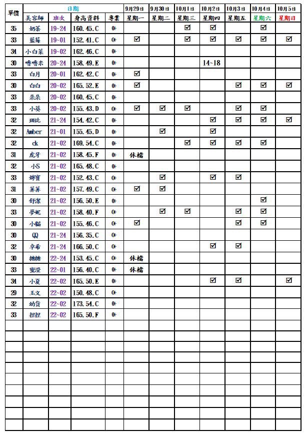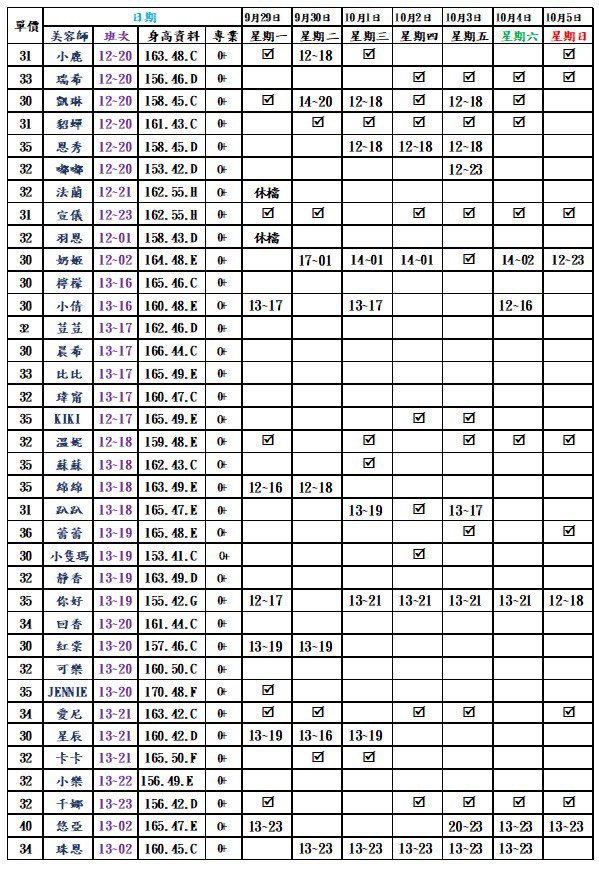 林森北路按摩舒壓|林森2館班表 2025.09.29更新