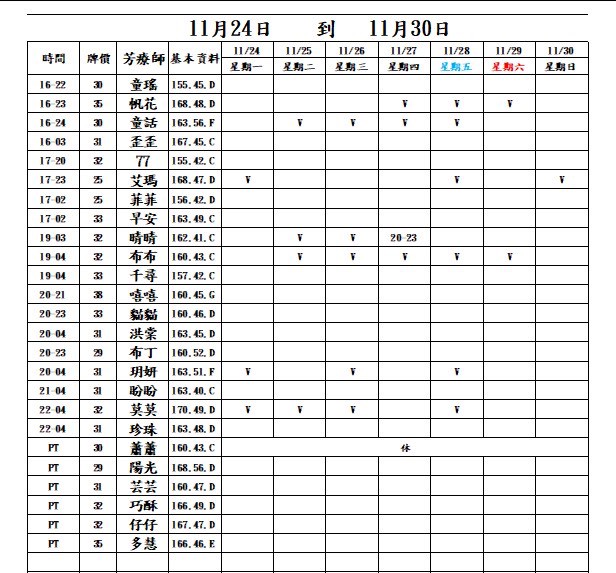 林森北按摩舒壓|夏威夷館班表 2025.11.24 更新