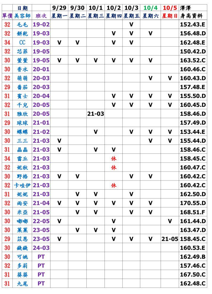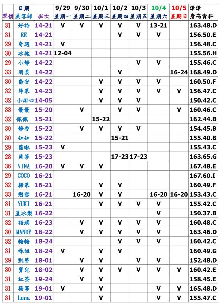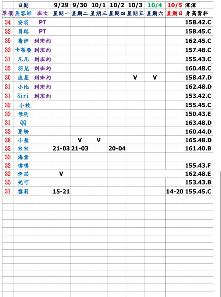- 加值服務:班表無標示,私訊我詢問。>>> LINE