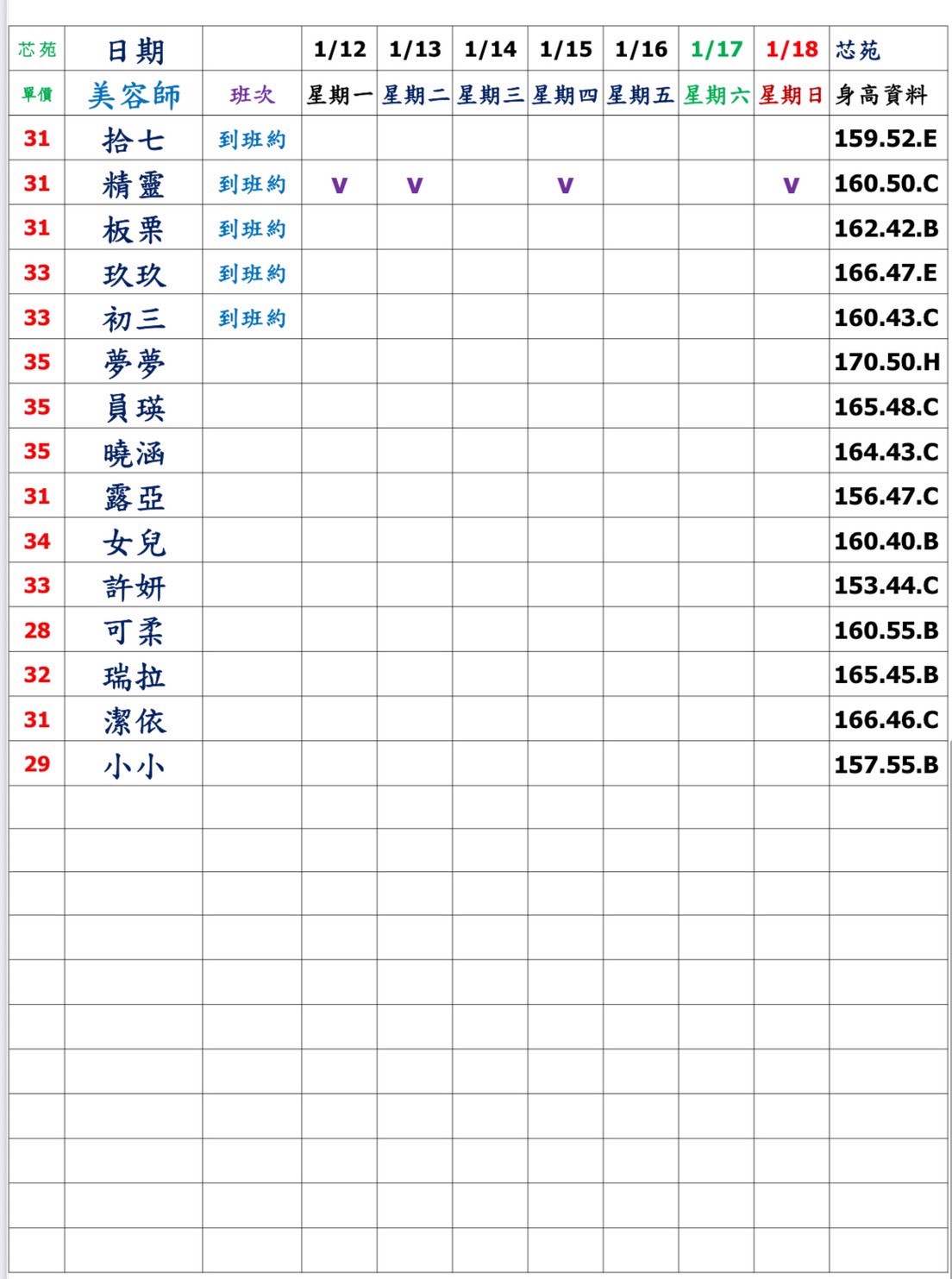 - 加值服務:班表無標示,需私訊我詢問。>>> LINE