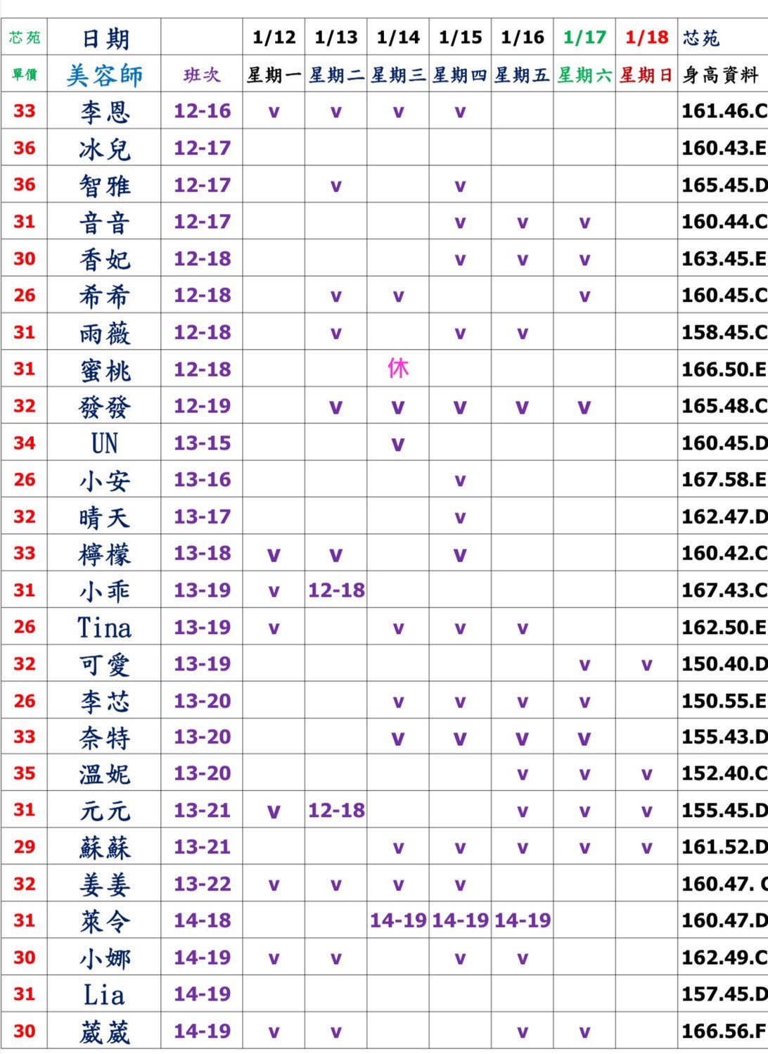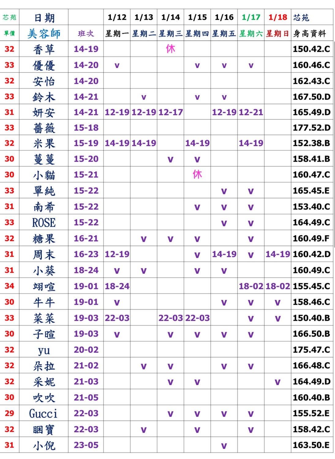 吉林路按摩舒壓|林森館班表 2025.01.12更新