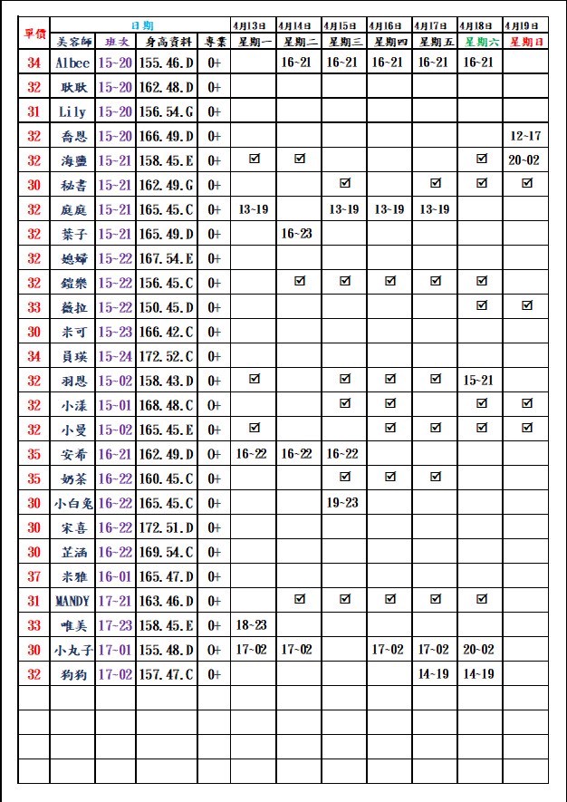 林森北路按摩舒壓|林森2館班表 2026.04.13更新