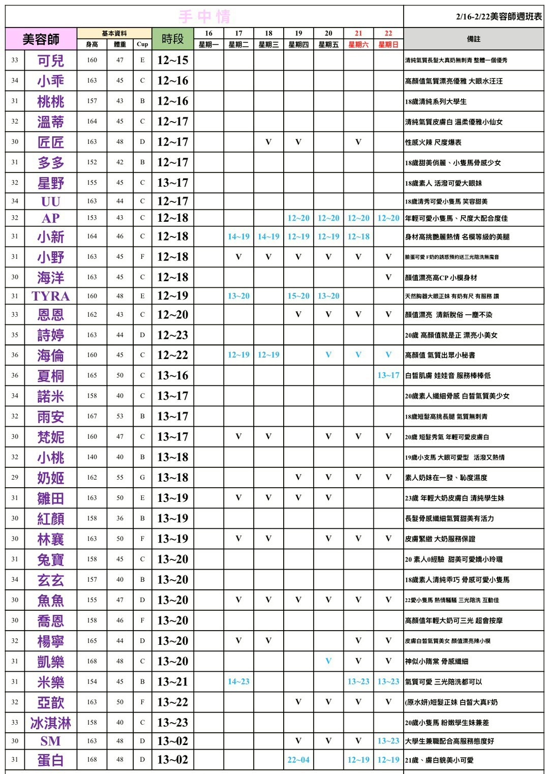 王妃館位於民權東路二段上,路邊停車格多,超級方便,包廂數量接近20間,完全不用浪費時間等待,消費還不用包廂費,想來台北舒壓放送,選王妃館就對了,萊恩每週更新王妃館班表,保證給你最新美容師!